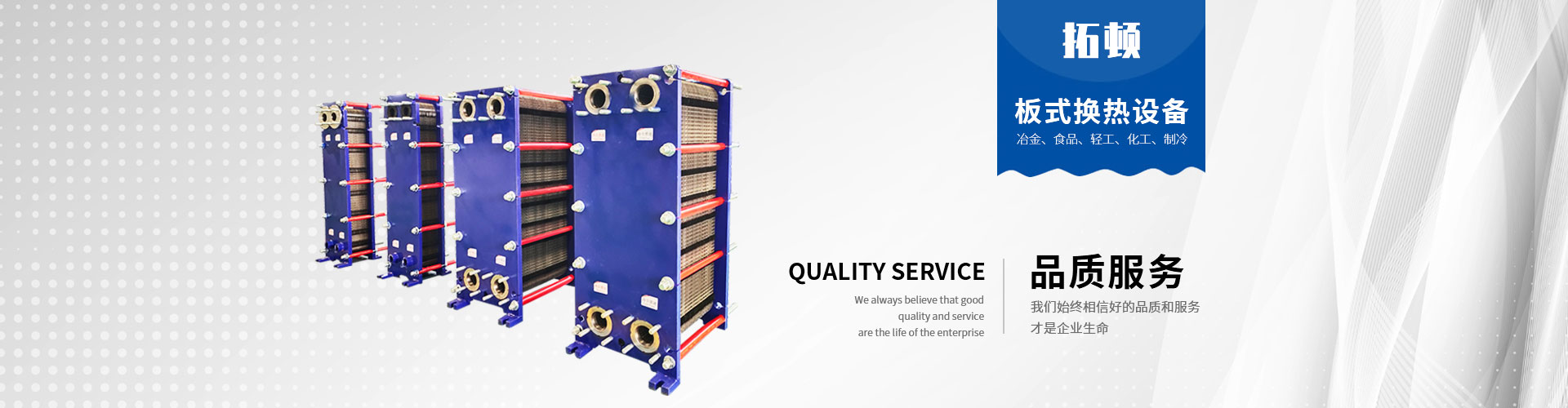 經(jīng)過持續(xù)努力,拓頓取得了質(zhì)量、健康和環(huán)境體系的“三標一體”認證、美國ASME 認證。制造許可證等體系認證; 公司以8大族群30余種換熱產(chǎn)品為載體, 為化工、冶金、供熱、機械油冷、醫(yī)藥、造紙、輕紡、船舶、石油、電力、集中供暖、空調(diào)制冷、食品飲料、海水淡化、海水養(yǎng)殖,生物質(zhì)能分布式能源等行業(yè)提供個性化、專業(yè)化的解決方案用于加熱、冷卻、蒸發(fā)、冷凝、殺菌毒、余熱回收等。